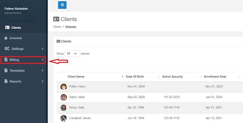 - You can adjust the date range according to your billing frequency (e.g., daily, weekly, monthly) and sort the information by clients or programs. Additionally, you can perform batch billing.