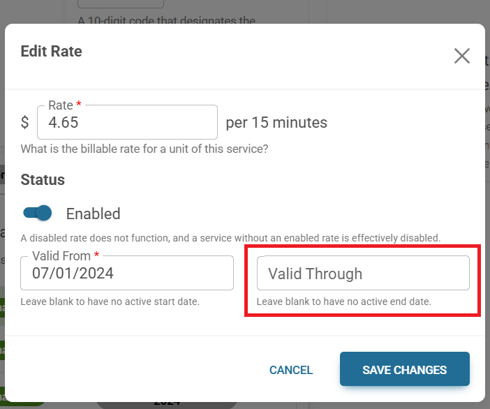 Make sure to add the Valid through date for the previous rate so the new rate will take effect.